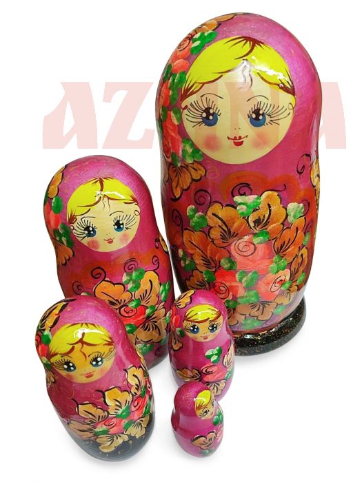 Matryoshka 5 pcs golden petals maroon